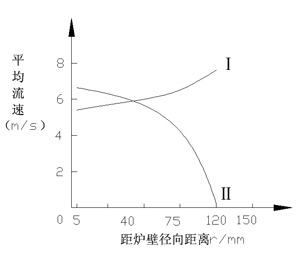 当焦炭块度与炉子内径之比d/D=1/8.5时,风速沿炉子径向保持不变的分布状态,即送风可穿透炉子中心;当d/D=1/15时,由于焦炭块度小而阻力增加,风速沿径向减弱,迫使炉子中心出现了弱风区(3)。